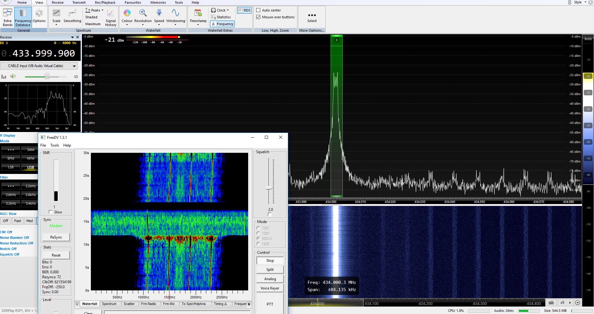 We can also live transmitting a received band frequency. Here the input frequency is a FM broadcast station which is retransmit on 434MHZ.