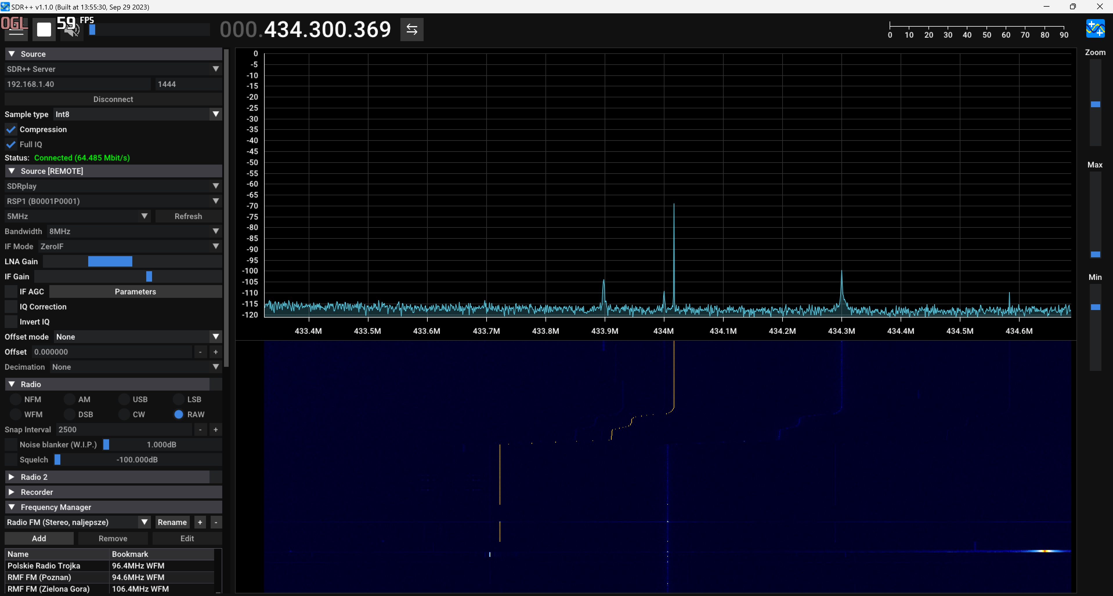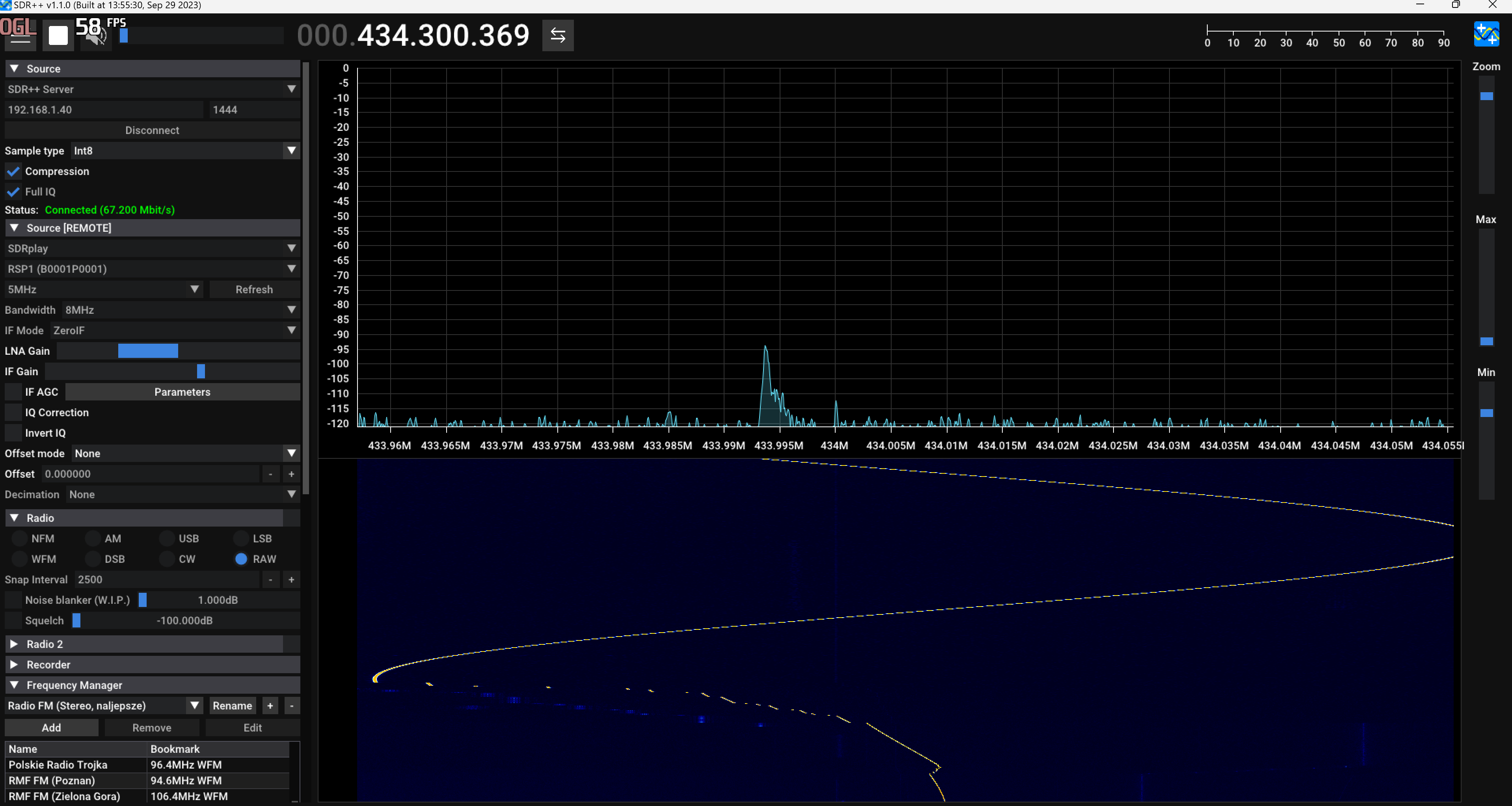 fmtransponder We can also live transmitting a received band frequency. Here the input frequency is a FM broadcast station which is retransmit on 434MHZ.